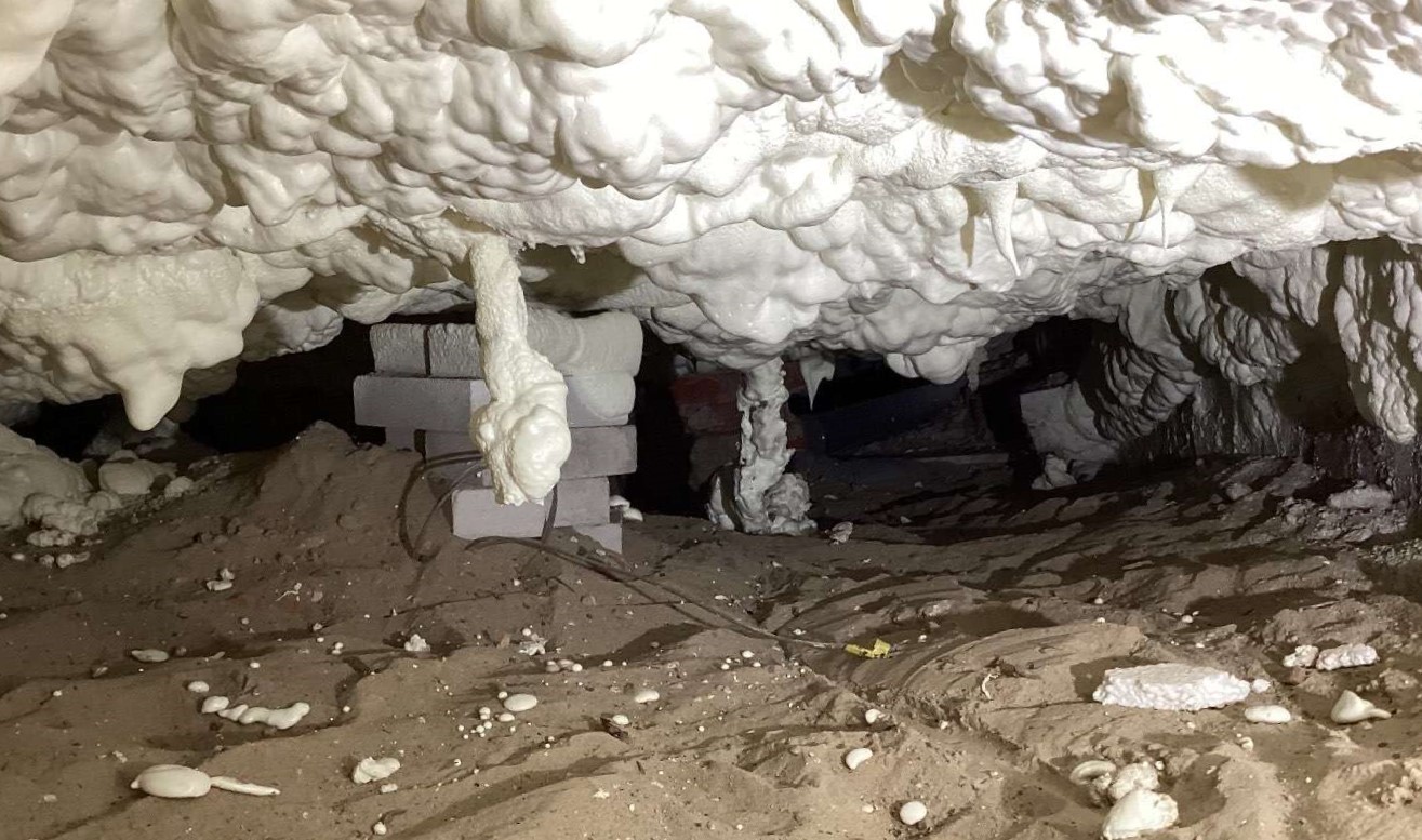 Bij sommige woningen verwijderen wij ook bestaande kruipruimte-isolatie, voor bijvoorbeeld loodgieterwerk of het storten van een betonvloer.